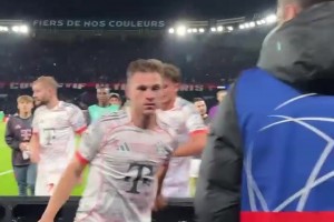 赛后以为哪个球迷冲场了,原来是孔帕尼,现在拜仁整个团队太团结