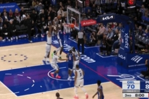 闲庭信步!哈珀后场开始运球 连续过掉防守完美压哨上篮打中