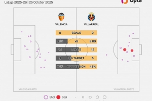 比利亚雷亚尔西甲对阵瓦伦西亚取胜22场,多于对阵其他球队