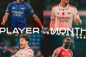 阿森纳官方10月最佳球员候选:赖斯、萨卡、加布里埃尔、廷伯