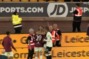 视频画面显示,终场哨响后,这位西汉姆队长走向客队看台。球迷们似乎正在宣泄怒火,对着这位前锋大喊大叫并做出手势。鲍文停下脚步回应,随即被保安和队友拉离现场。
