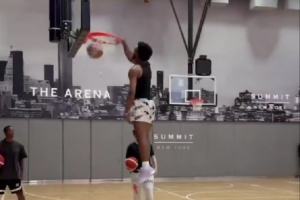 Hoop Herald配文道:“布朗尼的这个扣篮片段,当你意识到他穿鞋身高才6英尺2英寸左右(约合1.88米)时,简直太夸张了。世界级的运动员。”