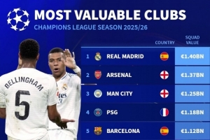 体育资讯8月29日讯 德国转会市场统计了本赛季欧冠参赛球队的总身价,并列出榜单,皇马14亿欧居首,阿森纳、曼城二三位。