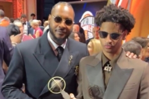 在这个荣耀时刻,安东尼和儿子基扬合影,拍照留念。
