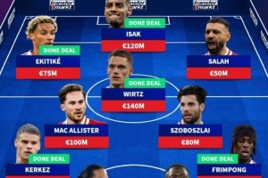 前锋:埃基蒂克(7500万,法兰克福)、伊萨克(1.2亿,纽卡斯尔)、萨拉赫(5000万)
