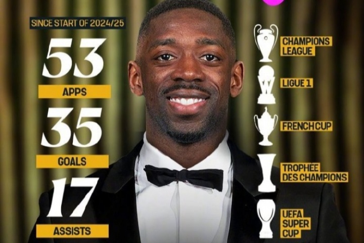 此前金球奖官方公布了金球奖候选人名单,登贝莱凭借上赛季的优秀表现在列;此外他的金球奖赔率也位居候选人第一。