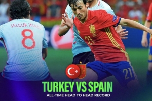 西班牙在与土耳其的交手中取得6胜4平1负的战绩,唯一一次失利是71年前的1954年,西班牙在世预赛0-1不敌土耳其。