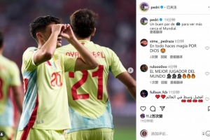 佩德里社媒晒出标志性庆祝动作,配文:“一副好👓,让我们更清楚地看到世界杯。”