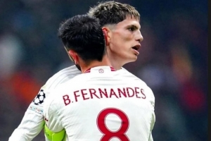 B费迎来31岁生日,加纳乔社媒晒出与B费在赛场拥抱的照片,配文:“🎂B费,感谢你为我所做的一切,我爱你😘”