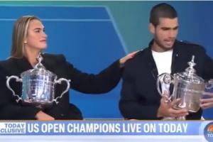 两位冠军一起参加节目,萨巴伦卡误把阿尔卡拉斯叫成了辛纳。