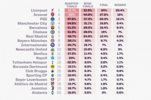 体育资讯9月10日讯 opta使用超级计算机预测本赛季欧冠夺冠概率,利物浦20.4%为夺冠最大热门,阿森纳16%次席,巴黎12.1%第三。