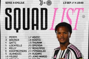 体育资讯9月13日讯 北京时间明天凌晨0点,尤文将在意甲第三轮比赛中主场对阵国米,尤文公布了此役的球员名单。