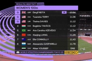 体育资讯9月13日讯 2025年东京田径世锦赛女子100米预赛,梁小静在第五组第8道登场,最终梁小静11秒29小组第六无缘半决赛。