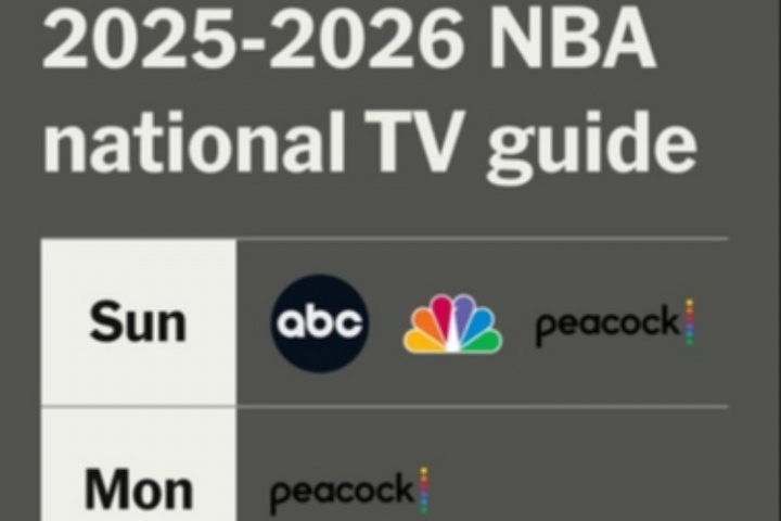 2025-26赛季的全美直播比赛将通过ESPN、NBC、ABC、Peacock、Prime等平台播出。