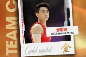 世锦赛双杠4冠王!邹敬园时隔3年再夺世锦赛冠军 领先第二0.8分!