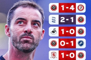 目前,谢菲联在英冠联赛6战6负积0分,进1球失12球,位居积分榜倒数第一。