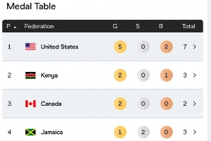 6、坦桑尼亚,1金0银0铜,1块奖牌