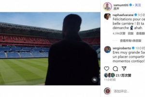 巴萨官方:谢谢你,萨穆!祝你在人生的新阶段好运