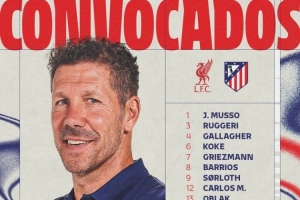 体育资讯9月16日讯 北京时间9月18日凌晨,马竞将在欧冠比赛中客场对阵利物浦,马竞公布了此役的球员名单,吉梅内斯、巴埃纳、阿尔马达、阿尔瓦雷斯(对阵黄潜因身体不适离场)、卡尔多索(训练中左脚踝扭伤)不会随队出征。