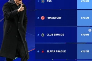 体育资讯9月16日讯 本赛季欧冠即将打响,德转也根据联赛阶段对手平均身价盘点了各球队赛程难易程度,其中巴黎对手的平均身价最高,具体如下: