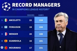 体育资讯9月16日讯 新赛季欧冠即将开打,德转列主教练执教欧冠场次排行,安切洛蒂218场居首,弗格森、温格排在二三位。
