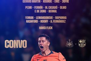 体育资讯09月17日讯 北京时间9月19日03:00,欧冠首轮,巴萨客场将对阵纽卡。巴萨公布比赛名单,亚马尔因伤缺席!莱万领衔,德容、拉什福德在列。