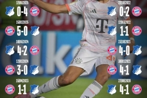 体育资讯9月20日讯 拜仁官推晒出海报,盘点了球队近10次对阵霍芬海姆的战绩,具体如下: