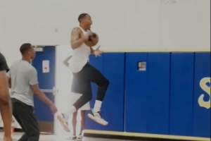 体育资讯8月16日讯 今日威少更新IG动态转发了一段自己的训练视频,视频中威少秀出稳定手感、扣篮、传球,视频最后他完成抢断后还来了一个高难度拉杆。