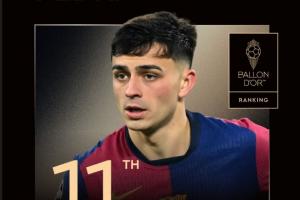 体育资讯9月23日讯 不久前,巴萨球员费兰-托雷斯转发了佩德里获得金球奖第11名的海报。