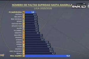 体育资讯09月23日讯 在新一期节目中,皇马TV对比了各队犯规数与黄牌数的情况,其中皇马的对手平均16次犯规才会获得1张黄牌,西甲最多,同时皇马每6.6次犯规就会获得1张黄牌;而巴萨的对手平均3.8次犯规就会获得1张黄牌,西甲最少。
