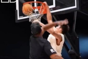 这球挺炸!奥孔武正面切入空中对抗后单臂隔扣霍姆格伦