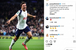 在社交媒体上,帕利尼亚写道:在另外一个想要夺得冠军的赛事中,我们闯进了下一轮。非常感谢热刺球迷们的支持!