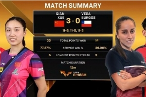 体育资讯9月28日讯 2025年WTT中国大满贯混双1/16决赛,薛飞/钱天一3-0战胜智利组合伯格斯/维加,晋级混双16强,比分:11-6、11-5、11-3。