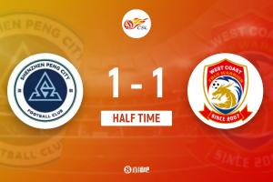 第10分钟,西海岸扳平比分,张卫凌空打门踢跐,阿齐兹得球直接长传,戴维森高速插上带球进入禁区后搓射破门,西海岸1-1新鹏城。↓
