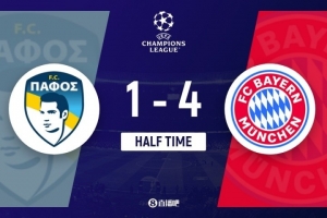 体育资讯10月1日讯 北京时间10月1日凌晨3:00,欧冠联赛阶段第2轮,帕福斯在斯泰利奥斯基里亚基迪斯体育场迎战拜仁。上半场凯恩双响,格雷罗建功,杰克逊破门,奥利塞两助攻,金玟哉解围失误,奥尔西奇远射破门,拜仁暂4-1帕福斯。