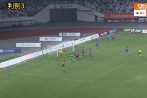 判例三:中甲联赛第24轮,苏州东吴vs南京城市。比赛第48分钟,苏州东吴6号队员头球射门,南京城市守门员将球扑出,助理裁判员示意球的整体已经越过球门线,裁判员判苏州东吴队进球得分。