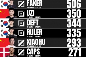 体育资讯10月4日讯 外媒统计:全球总决赛正赛击杀数最高选手榜;