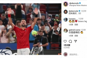德约科维奇社媒晒出谢场照片,表达再次来到中国参赛的喜悦之情,并用中文写道:“回来真好。”