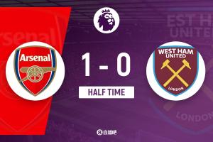 体育资讯10月4日讯 北京时间10月4日晚22时整,2025-26赛季英超第7轮在酋长球场展开角逐,阿森纳主场迎战西汉姆联。上半场埃泽失良机,萨卡进球越位,厄德高伤退,赖斯补射破救主,卡拉菲奥里中柱,阿森纳主场暂时1-0领先西汉姆联,枪手7成控球,铁锤帮半场0射正。