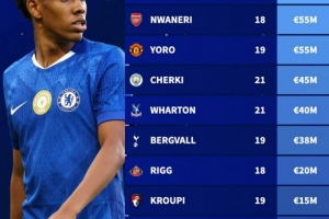 埃斯特旺(切尔西),18岁,身价6000万欧