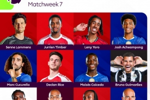 体育资讯10月6日讯 英格兰足坛名宿希勒评出了英超第7轮比赛最佳阵容,凯塞多、赖斯、库杜斯、约罗、拉门斯在列,主帅马雷斯卡。