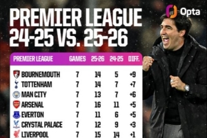 体育资讯10月7日讯 根据OPTA的统计,伯恩茅斯是英超较上赛季同期拿分最多的球队,他们比上赛季同期多拿9分。