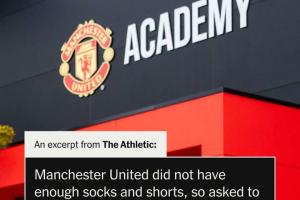 人员短缺问题还引发了上个月的尴尬事件。埃弗顿U13到卡灵顿参赛时,由于曼联球袜与短裤储备不足,曼联不得不向客队借用装备,导致小球员们身披印有埃弗顿队徽的装备出战。
