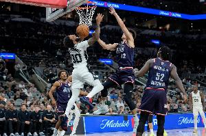 文班亚鲨?文班撞飞对手 随后上演凶残大猩猩暴扣!