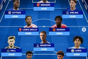 体育资讯10月12日讯 德转列出英格兰U21最贵阵容,恩瓦内里突前,斯凯利、梅努、吉滕斯在列,全队总身价3.93亿欧。