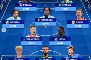 中场:费尔梅伦(马赛,2200万欧)、拉维亚(切尔西,4000万欧)、迭戈-莫雷拉(斯特拉斯堡,1800万欧)、姆班古拉(不莱梅,1400万欧)、米卡-霍茨(阿贾克斯,1300万欧)