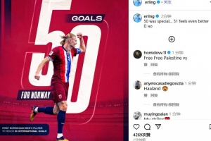哈兰德在社媒配文中写道:“第50球很特别……但第51球的感觉会更好😉🇳🇴”