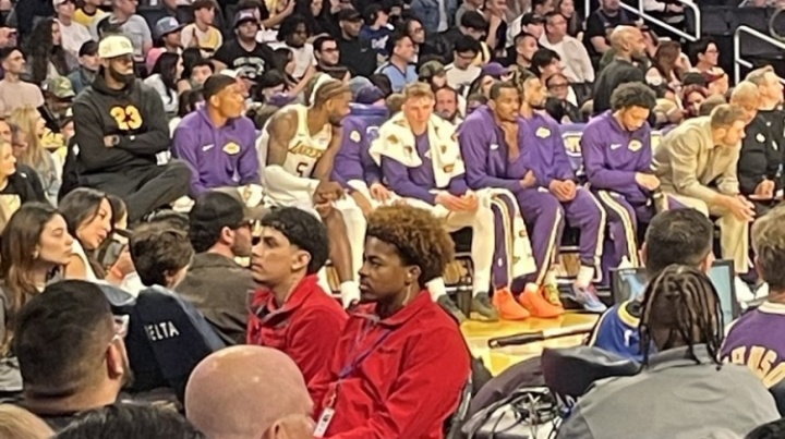 体育资讯10月13日讯 NBA季前赛,湖人主场迎战勇士,詹姆斯坐在了更高的椅子上,但跷了个二郎腿。