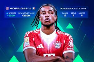 体育资讯10月14日讯 德转更新德甲身价,奥利塞身价暴涨3000万欧元,从1亿跃升至1.3亿欧,穆西亚拉1.4亿不变。