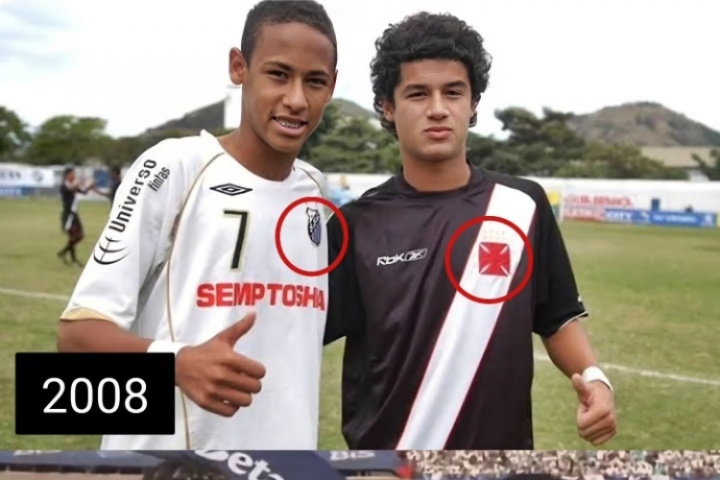 2008年:两位16岁的挚友在巴西杯兵戎相见,内马尔身披桑托斯战袍,库蒂尼奥代表瓦斯科达伽马,彼时皆是巴西足坛耀眼新星。